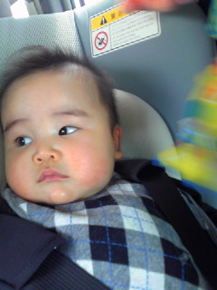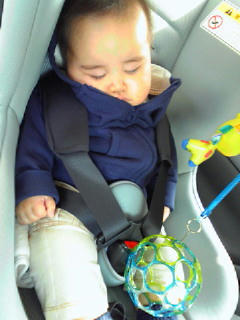 帰宅。(健康センターからウチまでは車で7分くらい。完全に停車すると息子のギャン泣きが激しくなるから、なるべく止まらないように)