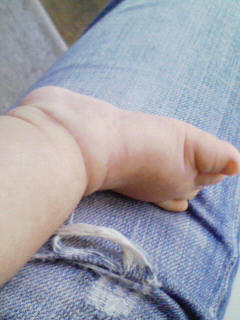 まぁさすがに中3日で詰まりはなかったんで、今日はかなり普通にマッサージ。その後ちょうど今日が2ヵ月半の息子の体重を量ってみました。
