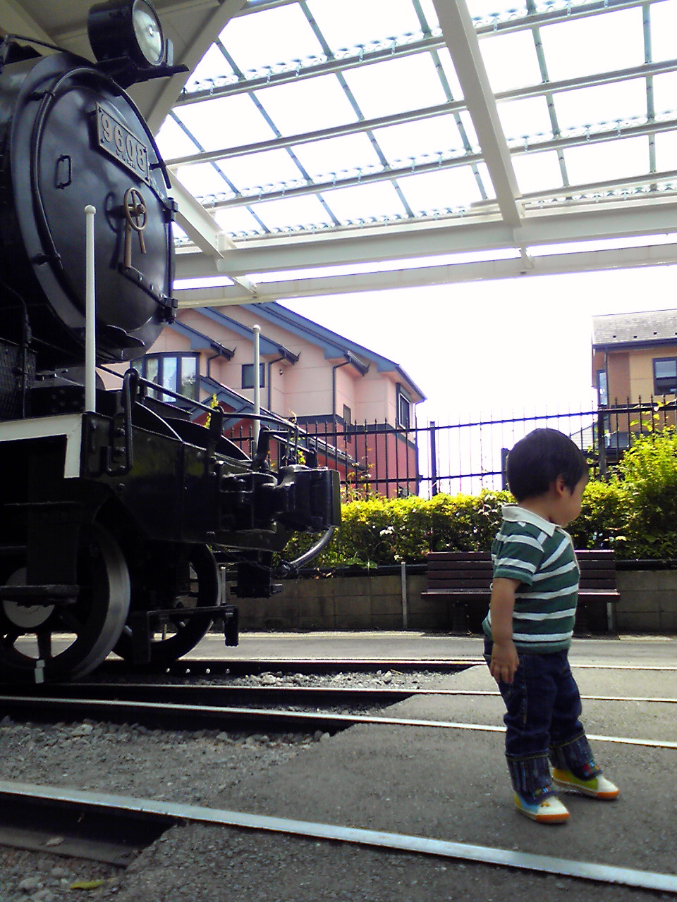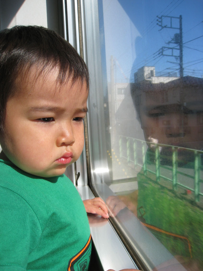 かあちゃん、でんしゃはうれしいけど、まぶしすぎるぜ!