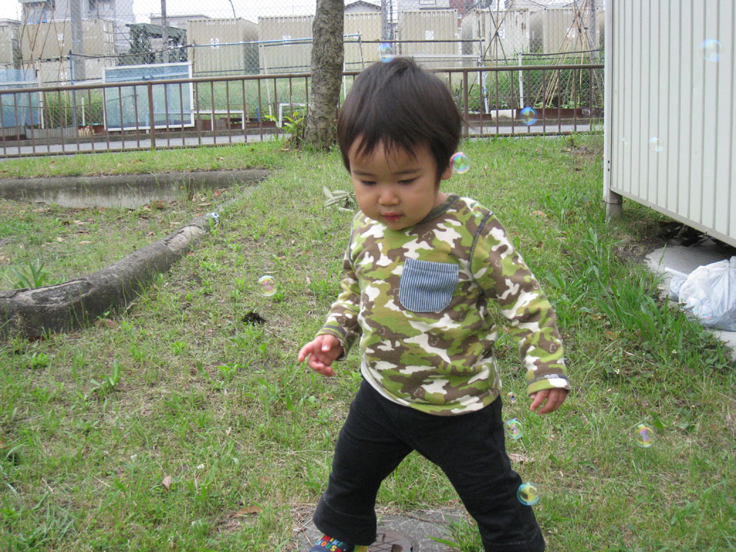 なぁんて正義のヒーローぶったポーズですが、今日は夕方シャボン玉で遊んだ時の写真です。若干飲み込んだりもしたけれど、何回か上手に自分で吹くことができて、この後10分くらいシャボン玉を吹くストローみたいなやつを離しませんでした。