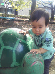 一番近い公園は、隣にあるマンション住民専用!みたいな雰囲気だし、あまり広くないのにいつもこどもがたくさん遊んでて(高校生や近所の大学生もいたり、小学生がソフトボールしてたり)、まだ動きの鈍い赤ちゃんにはちょっと危険な感じがするので、1駅電車に乗って。帰りは歩いて。