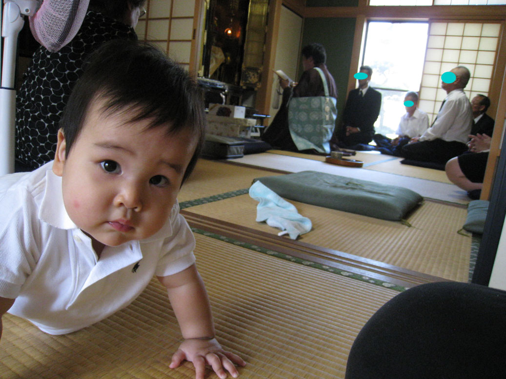 息子にとって初めての法事は、おっさま(お坊さんのことこう呼んでた。方言?)と読経にびっくりした様子もなく、静かにしてるようにと与えたオヤツを貪り食べて、動き回る始末。