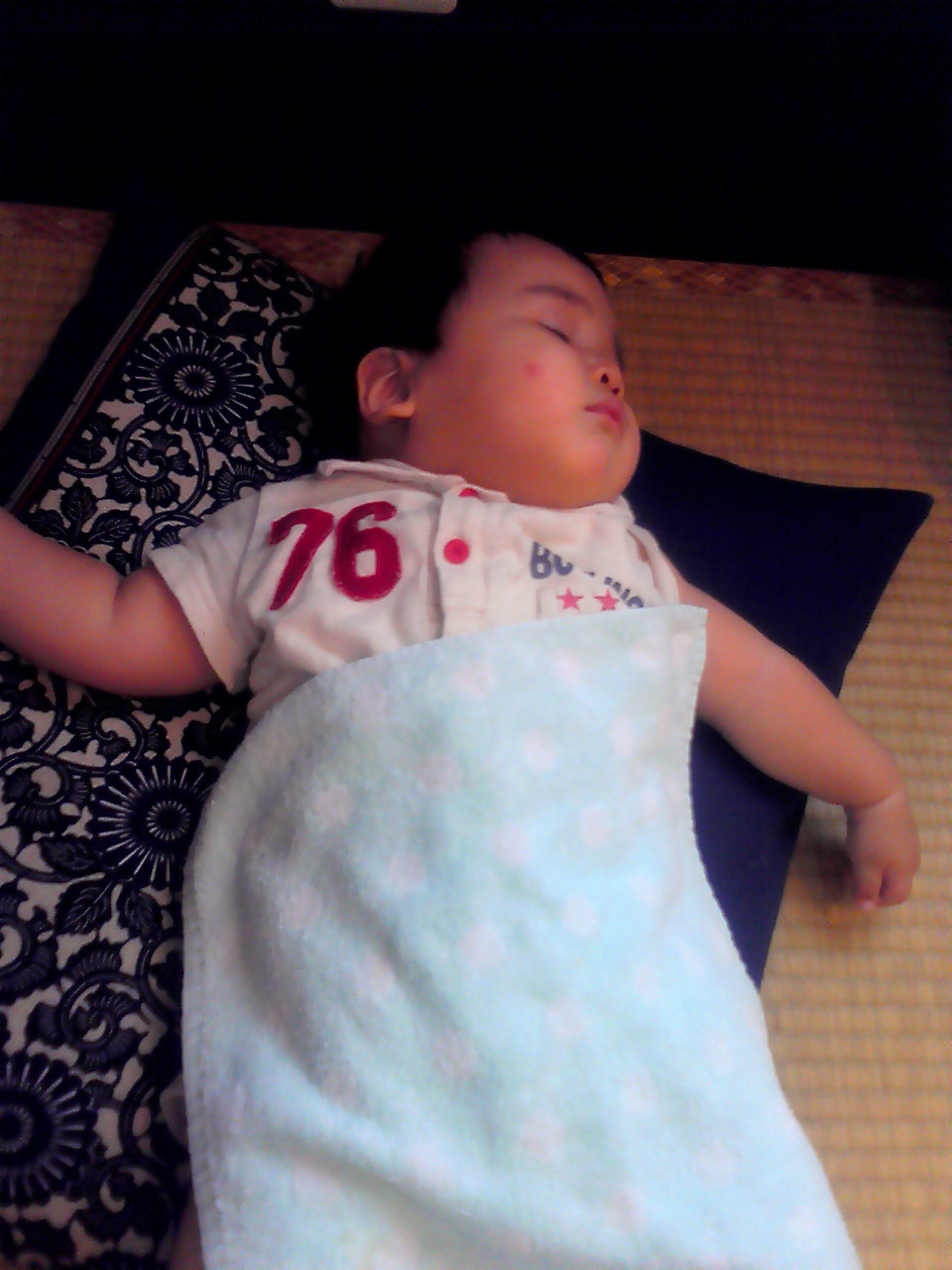 そして今日、5時半に起きて私の携帯を舐めくりまわして元気一杯だった息子は、9時に寝て9時半に起き、13時半に寝て、14時に起きました。