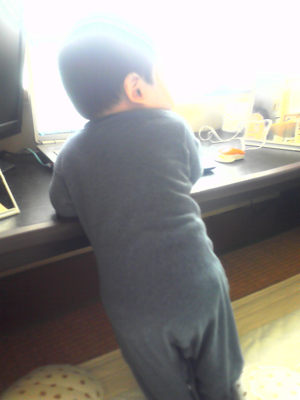 あとは両手をパチパチ拍手できるようになったし、『いただきます』で、母ちゃんの真似して時々手を合わせるようになったし、バイバイもたぶんそれらしいのができるようになった。(電車に向かってのみ(笑))